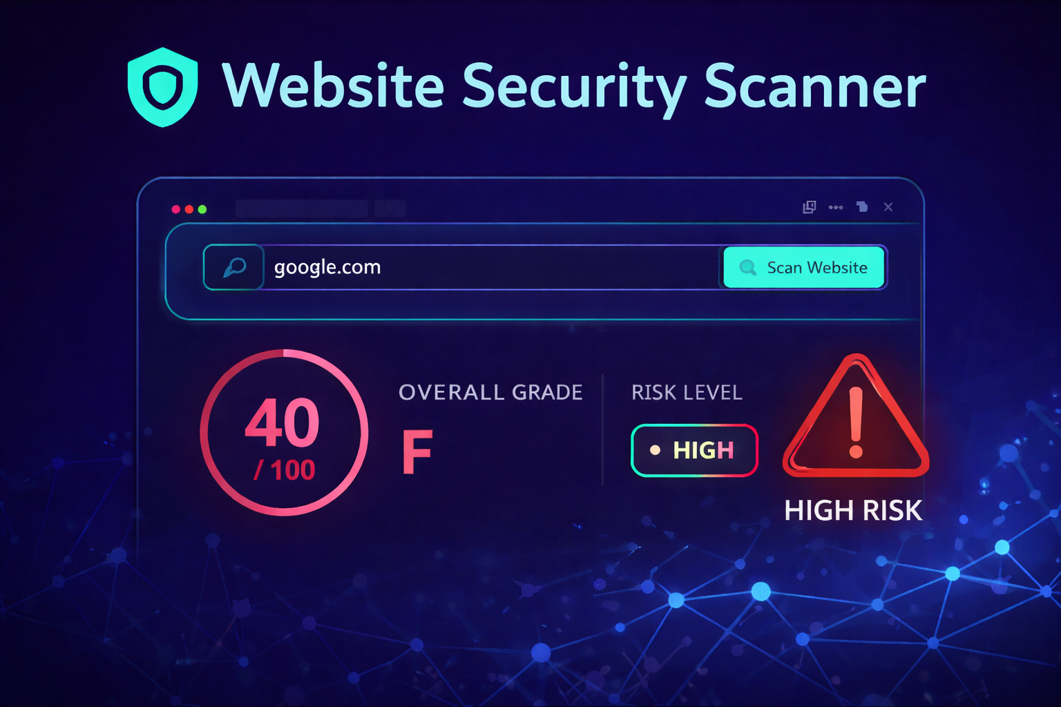 A sleek web that scans websites for security misconfigurations and instantly highlights risk levels with a clean, modern dashboard.